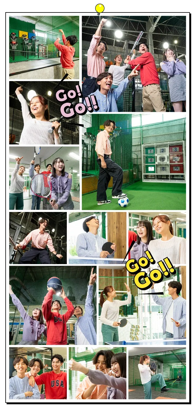 バスケ、テニス、サッカー、卓球など、野球をやったことがない人でも楽しめるゲームが盛りだくさん!家族や友達、大切な人と遊びに来て思いっきりはっちゃけよう!