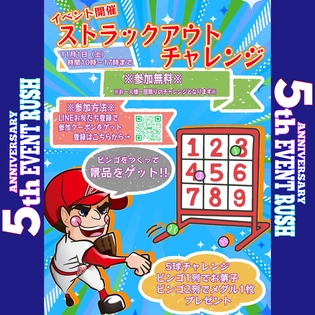 5周年イベントラッシュ第1弾!!11月1日開催「ストラックアウトイベント」