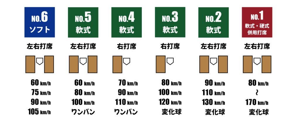 - 野球の初心者から経験者まで、お客様に応じたスピードで楽しんでいただけます。バッティングのコツに関しましてはホームページ内のバッティング打ち方ガイドブックをご覧ください。