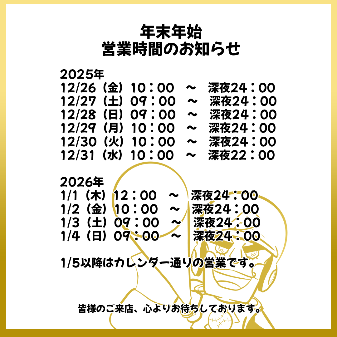 年末年始営業時間のお知らせ
